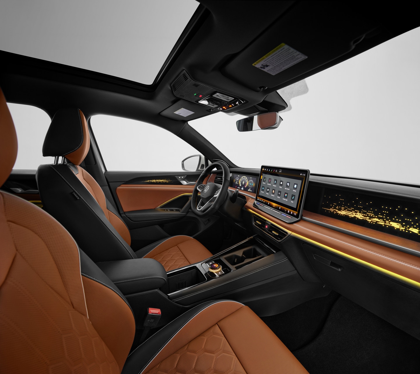 Drivers can even customize the mood of the cabin using the new Volkswagen "Atmospheres" feature, which synchronizes ambient lighting and audio profiles to create a personalized driving environment. The result is a cabin that feels intelligent, connected, and distinctly modern.